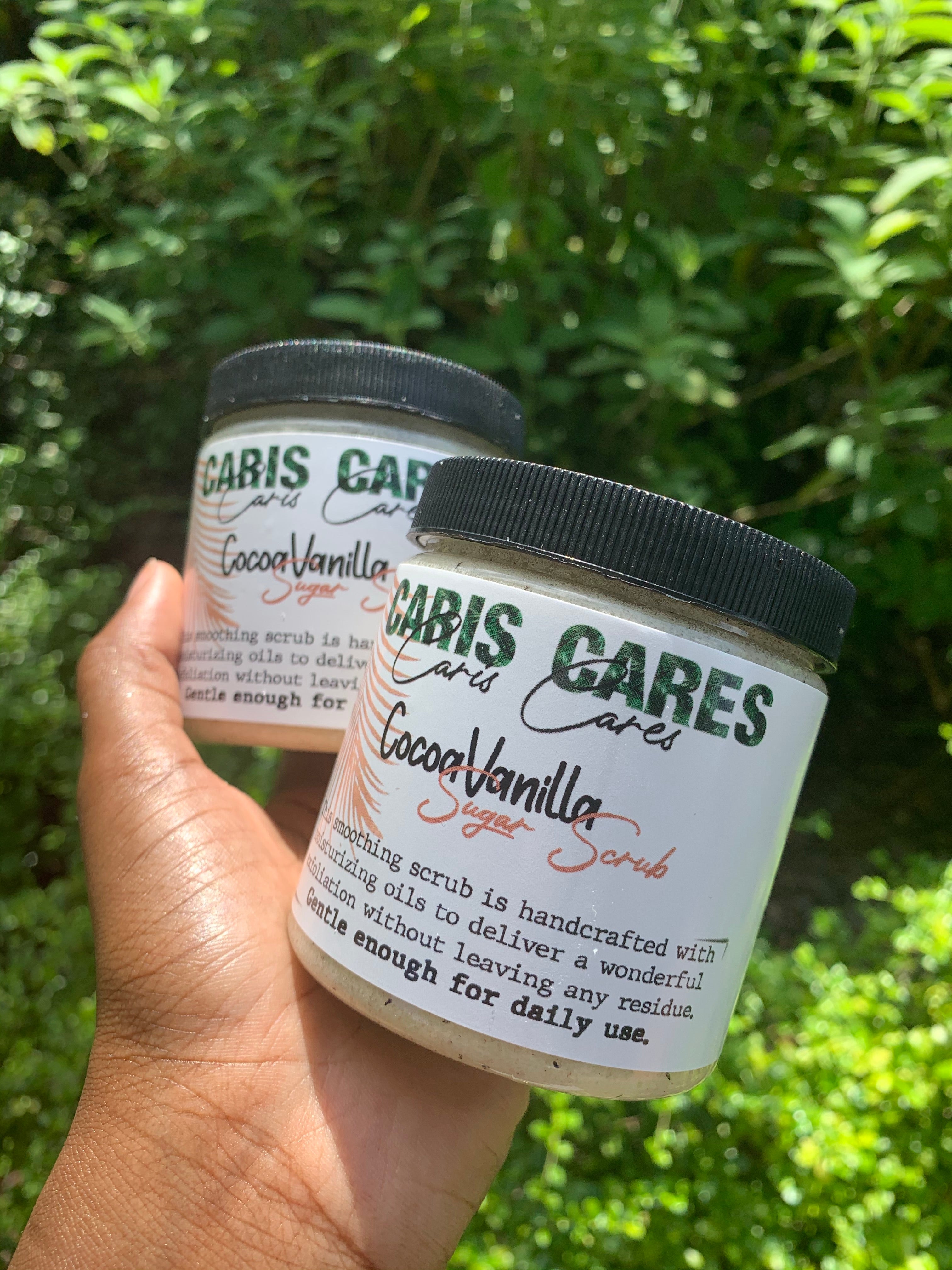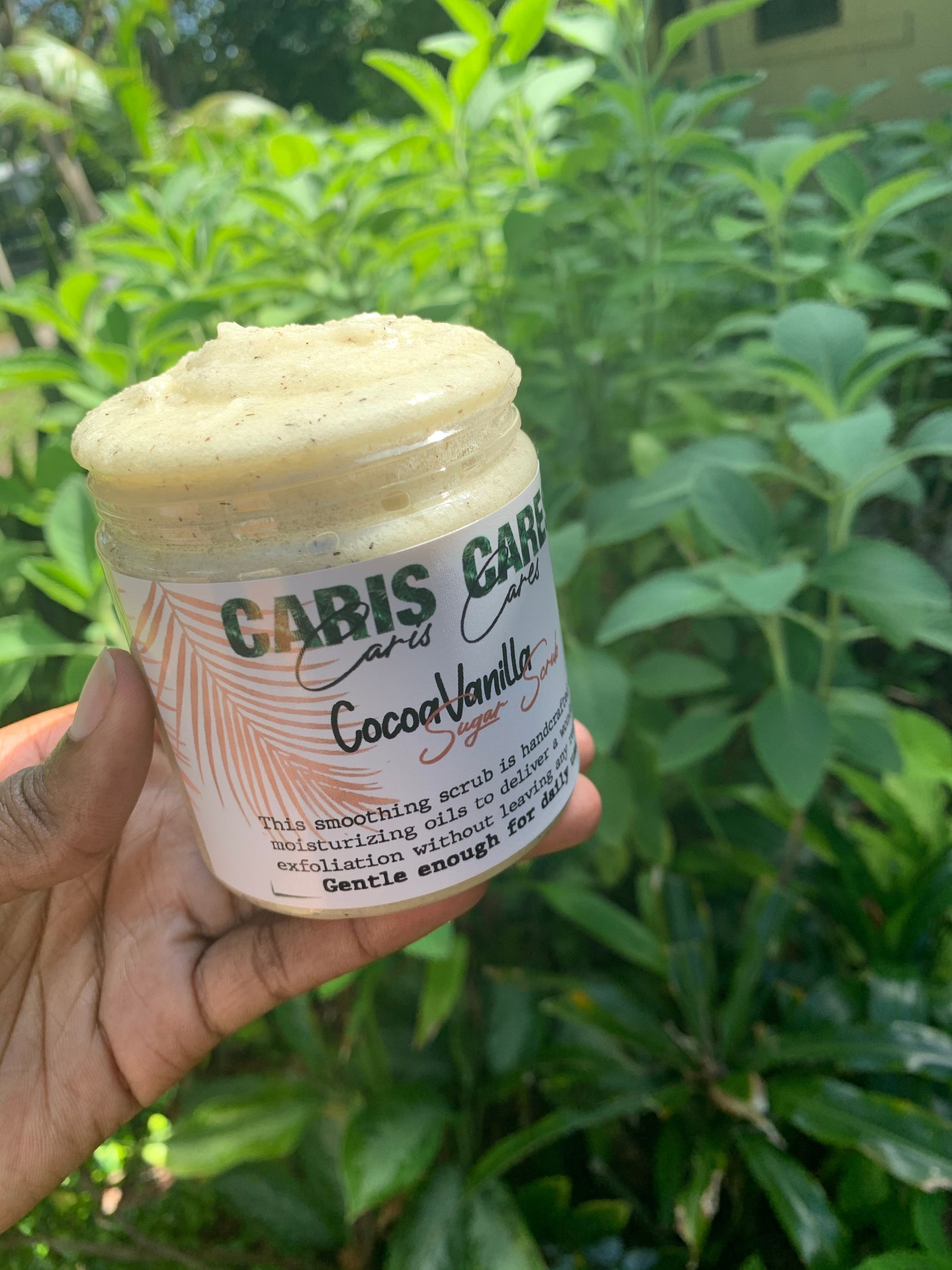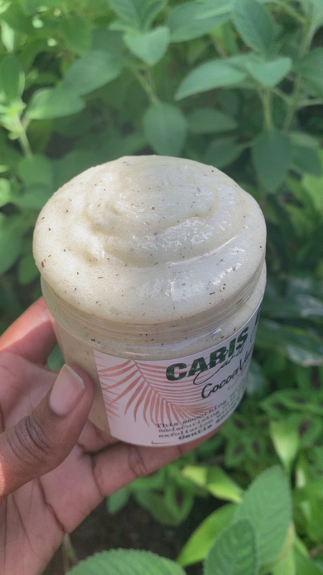 Take a generous amount with dry or damp hands and rub in circular motions for a gentle exfoliation. Focus on the problem areas to sooth away bumps and/or dead skin. Use daily to combat ingrown hairs and gradually lighten dark marks. Be sure to pair with our CocoaVanilla Bar Soap for a gentle, clarifying cleanse and CocoaVanilla Whipped Butter to provide wonderful moisture.